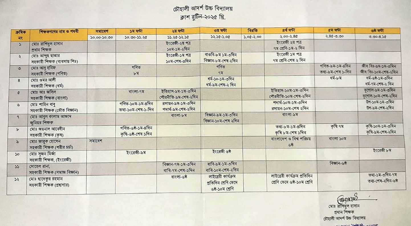 ক্লাস সময়সূচি রুটিন